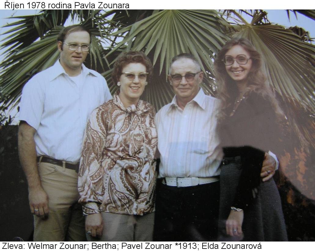 Manžel(ka): Bertha (Oddáni Červenec-1945) Děti: Delmar Eugene Zounar, Elda Darlene Zounarová